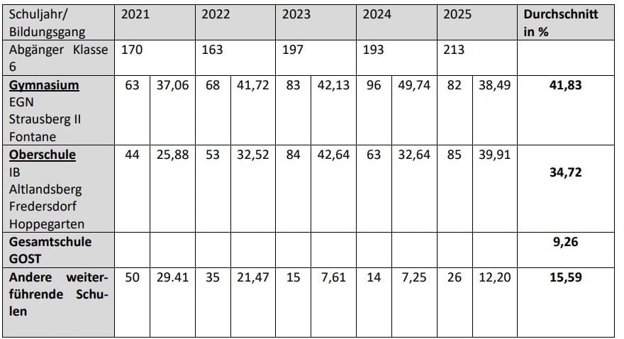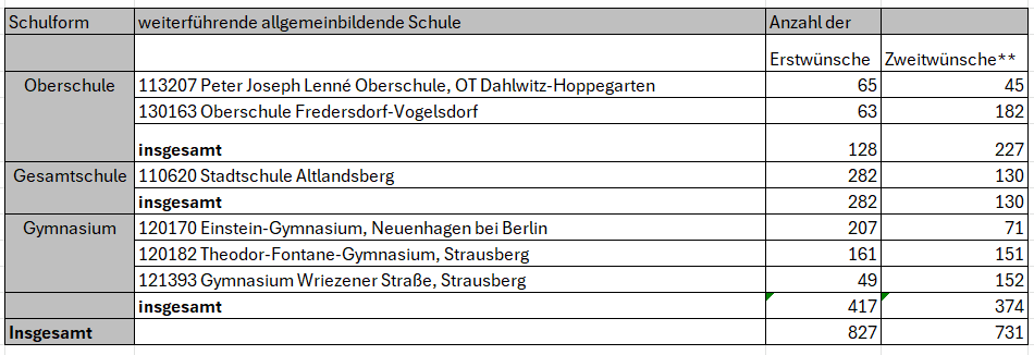 Die tatsächliche Nachfrage ist ernüchternd: Lediglich 128 Sechstklässler haben eine Oberschule als Erst- oder Zweitwunsch angegeben. Bereinigt man diese Zahl um den bevorstehenden Schulformwechsel der Oberschule Fredersdorf zur Gesamtschule, verbleiben faktisch 65 Kinder. Der Elternwille ist eindeutig: Familien in Neuenhagen präferieren das Gymnasium oder eine Gesamtschule mit gymnasialer Oberstufe – aus rationaler Bildungsplanung, nicht schulpolitischer Präferenz.