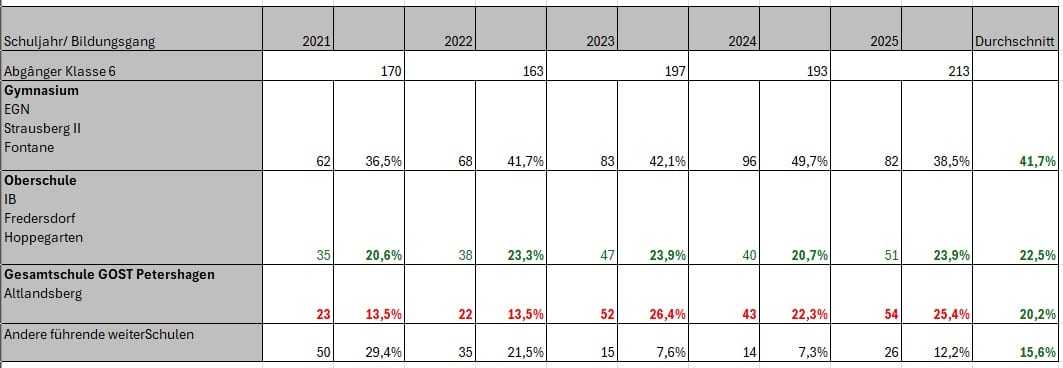 Der Schulentwicklungsplan, auf den die Gemeinde ihre Entscheidung stützt, enthält einen schwerwiegenden sachlichen Fehler: Der Schulcampus Altlandsberg wird als Oberschule klassifiziert, obwohl es sich um eine Gesamtschule mit gymnasialer Oberstufe handelt. Dieser Fehler verzerrt die Bedarfsermittlung regionaler Schülerströme grundlegend. Ergänzt man die bislang fehlenden Schülerzahlen aus Petershagen, ergibt sich ein fundamental anderes Nachfragebild. Bildungsplanung auf fehlerhafter Datenbasis produziert zwangsläufig fehlerhafte Schlussfolgerungen.
